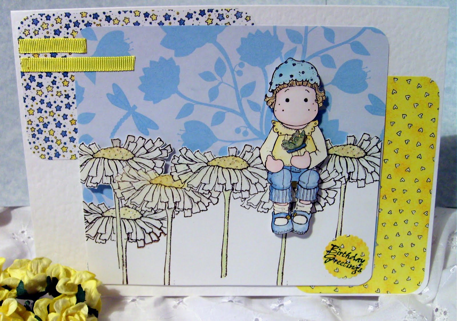 And finally I've gone cutesy again - using the Tilda with Butterfly and Big Daisy stamps from Magnolia for the
