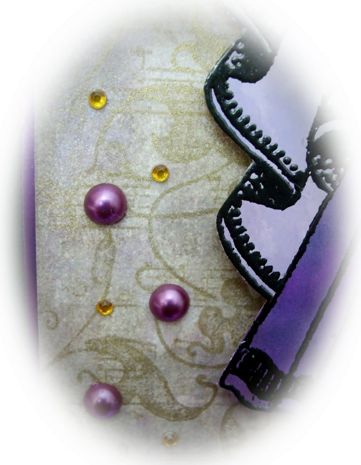 Totally Gorjuss Challenge too. The finishing touches are some pearls and gems for a bit of bling....and purple bling at that...yummy !!