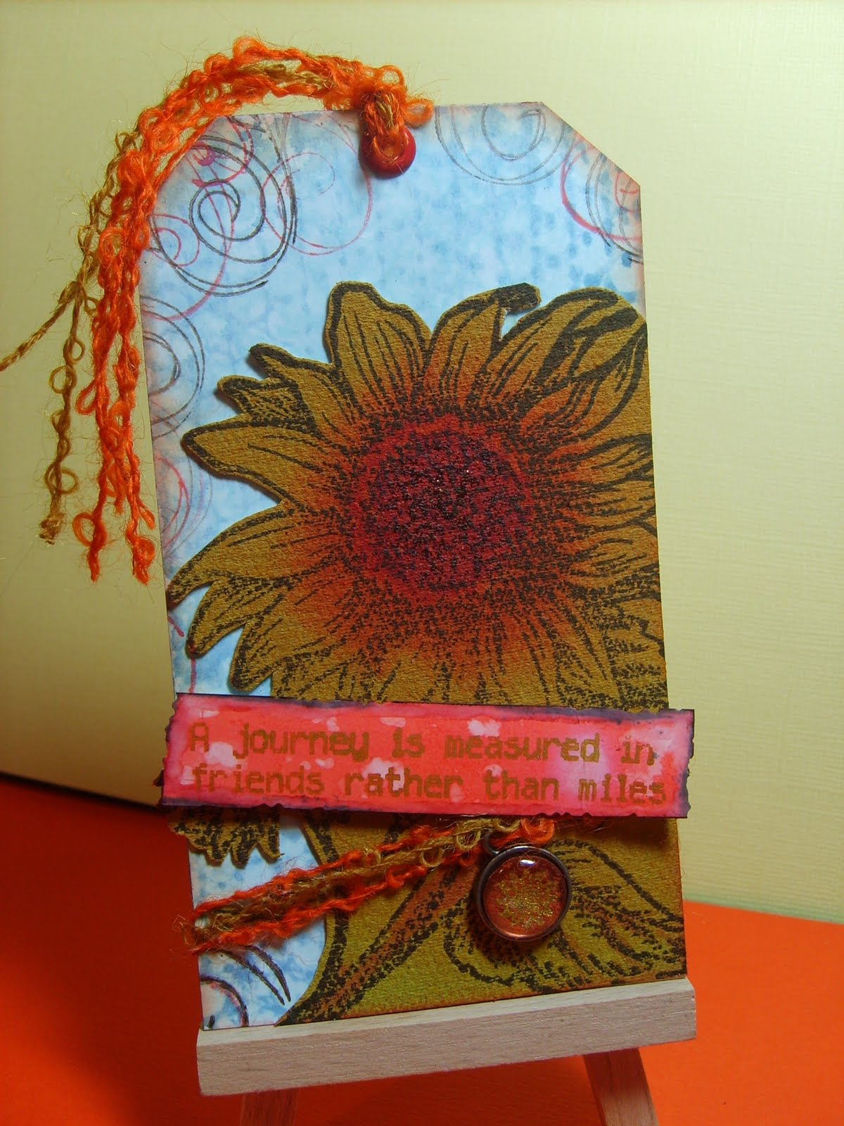 The other inspiration for this tag came while browsing 'Cathy Walters' Etsy shop. This was in aid of the Etsyinspired challenge, that I discovered today, to pick an item of art from the weeks etsy shop to inspire your own piece. Cathy Walters makes little pieces of wearable art in pendant form and I was quite taken with this one (given my love of sunflowers not surprising!).