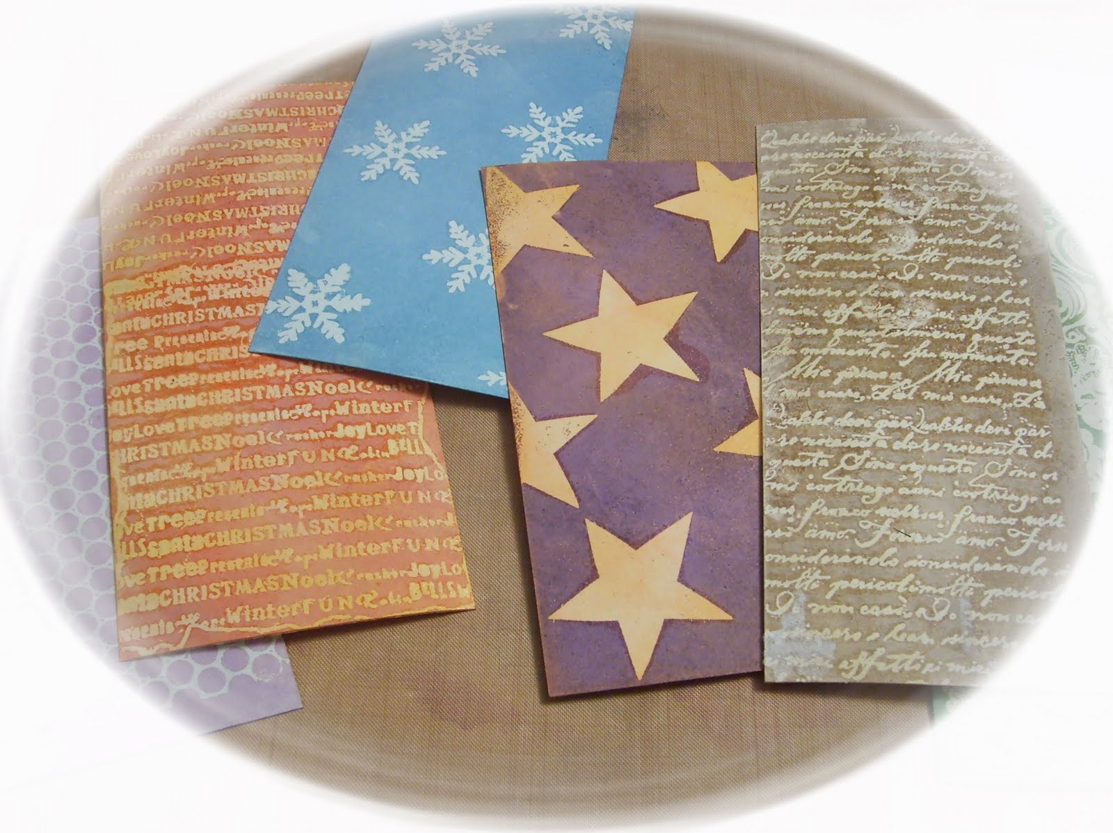 Determined not to rush it at the last minute again I made a flying start during the week making some backgrounds I was quite happy with using the Blended Batik technique (p36), which you may have seen on my desk for WOYWW. I have since been struggling to turn them into a finished project I liked and this is the only one I'm happy enough to share and even then there are elements I'm not so sure about...but here it is never the less...