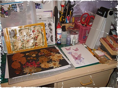 13. Lovely to look through forgotton boxes in the loft. Gorgeous pressed flowers. Thanks for showing your workspace. Carolxx