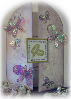 Happy New Year everyone - hope you are all recovering from a night of fun and frolicking! I have spent some time today hopping about blog land with The Stamp Man design team. The first challenge for 2011 is to show off our favourate project from 2010. This was quite tricky for me - I only started blogging in 2010 and although I have been crafting for years joining the blogging world opened up a whole new source of inspiration for me and I tried many new things for the first time - not to mention purchasing my first set of Tim Holtz stamps and being chosen for the Stamp Addicts Design Team (still excited! - no apologies for mentioning it again!). But I finally settled on this card which I made for my niece's wedding.