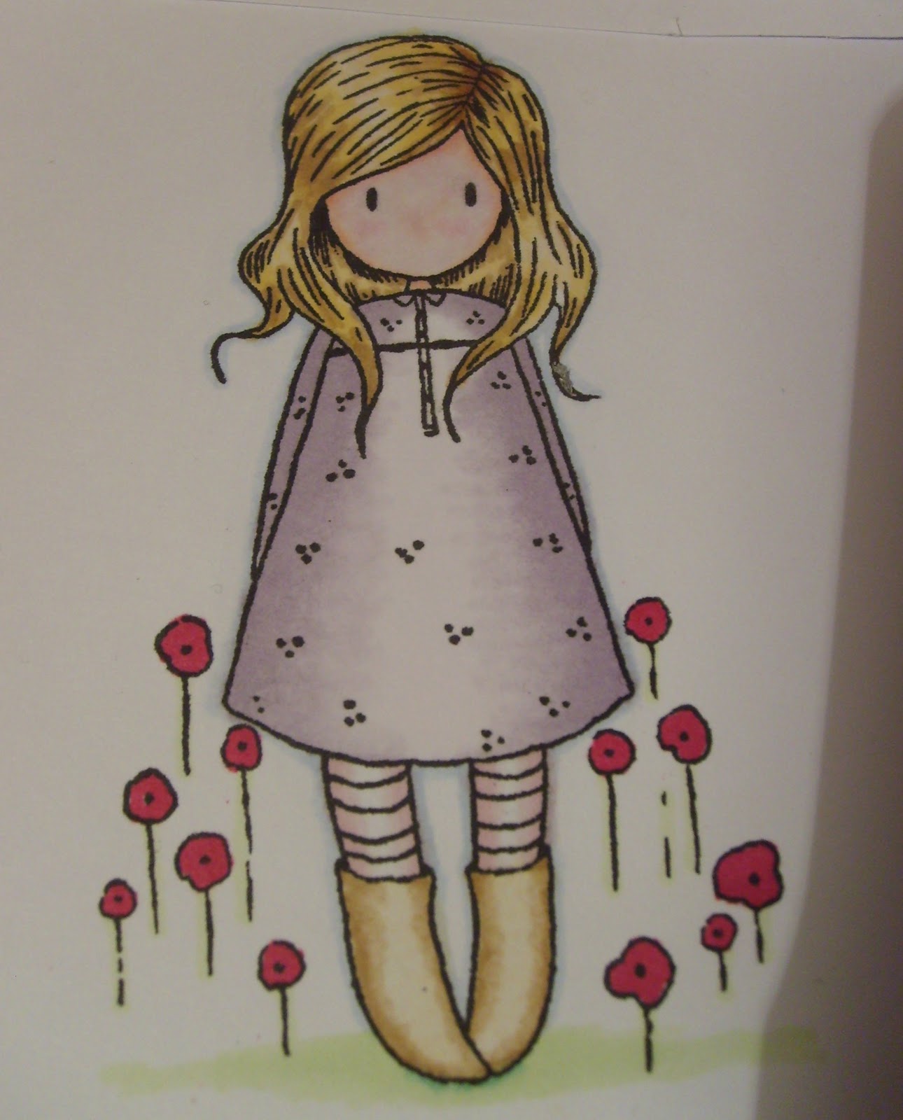 As I mentioned in a post the other day I've been practising with my first Pro-Markers that I got from Santa and so have some stamped images in various stages of colouring awaiting my return. I'm loving these new additions to my crafting stash and am quite please with my first attempts. I fiddled with this Gorjuss girls hair for absolutely ages and am really pleased...but can I remember now what did so I can do it again?...of course not !