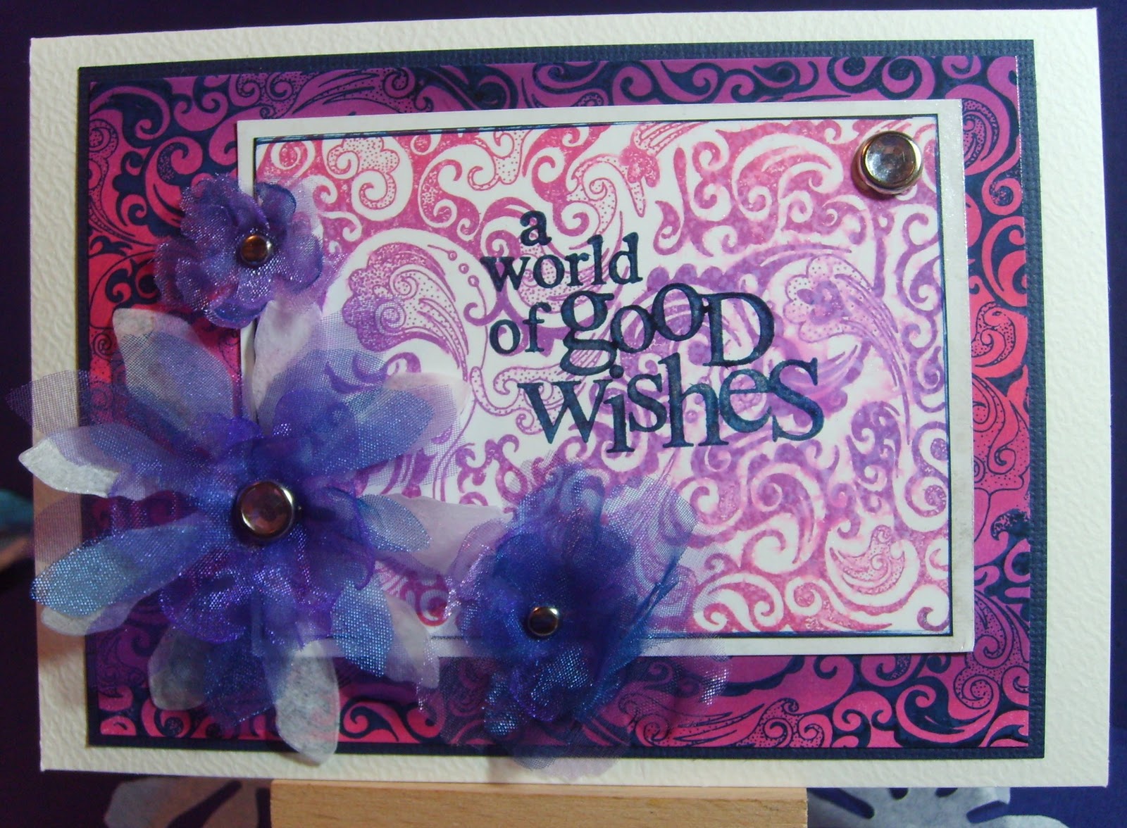 ReplyDeleteYour background papers are so fantastic. Love the use of the organza flowers too. Thanks for playing along at The Play Date Cafe this week.