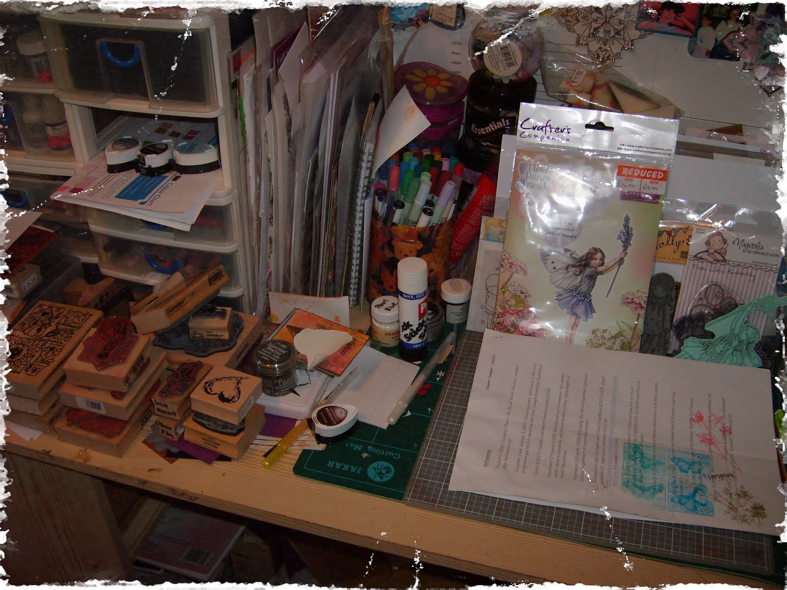 Blimey - can't believe I almost missed WOYWW..I've been on leave from work since last Thursday, had my head in study books and completely lost track of the days! I've been sharing my time between two desks this last week - the dining table with my boring work studying on...and my craft table which is an absolute tip and in desperate need of a tidy. I have a terrible habit of leaving stamps out when I've used them and they just kind of pile up!! As you can see......