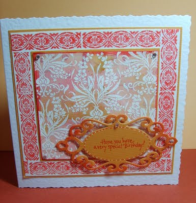 ReplyDeleteGorgeous! Love those damask like designs and that intricate sentiment panel! Just lovely! Thanks for playing along with us at the Play Date Cafe!