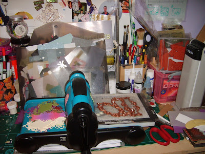 ReplyDeleteSuch a busy desk!! I think your WoW card is lovely - super mix of embossing techniques!