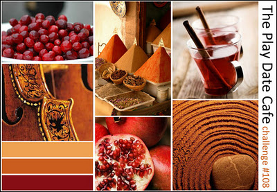 I took the colours from this weeks Play Date Cafe - gorgeous rich colours which put me in mind to make a more male style tag. I used Distress inks to colour and stamped a background, made a rosette with a strip of papermania DP, coloured some buttons with 'Currant' alcohol ink added a camera charm , square brads and a die cut flourish. The sentiment is made with rub on letters.