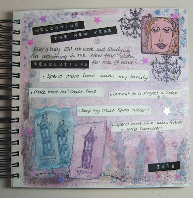 The Craft Barn's theme is 'Buildings' which we can interpret our own way. I dug out the one stamp of a house I have and because it also says welcome I came up with the idea of welcoming the New Year in with some resolutions for me at Home! I don't normally do resolutions because I'm rubbish at sticking to them, but thought if I made them part of an ongoing project I might stand more chance.