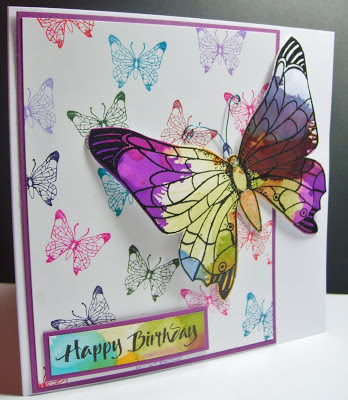 The background for this one is simply a small Butterfly stamped in various colours of Stazon.