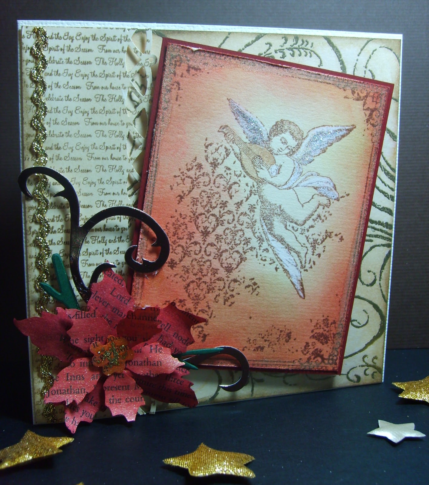 ReplyDeleteA fabulous Christmas card Esther, I love the poinsettia and the image is lovely.