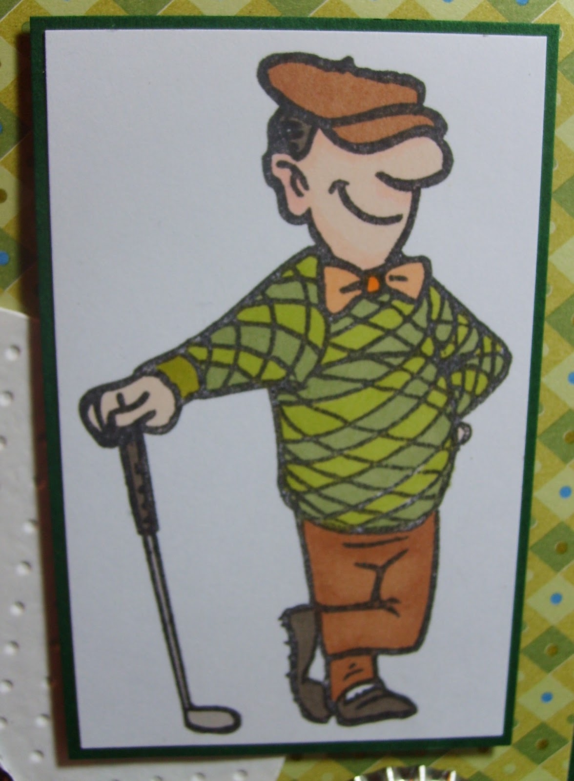 I ran a white circle through my big shot in a polka dots embossing folder and then turned it over to use the de-bossed side thinking it may look a little like a golf ball.