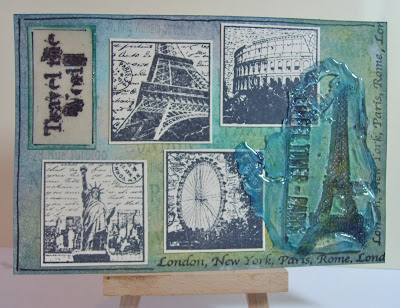 I couldn't decide on one destination so went for a mini world tour, using stamps from Crafty individuals and Stampendous. The background is created with distress inks,