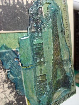I've used an embelishment made from UTEE to add some texture. I melted the UTEE on my craft sheet before stamping into it while still soft. When it was cooled/set I applied some metallic bue paint wiht a dry brush to the back to add more detail and make it stand out a bit more. I Look forward to seeing where your travels take you -