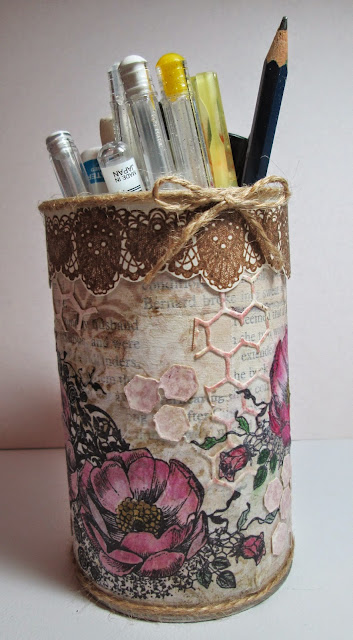 Wonderful vintage garden pencil pot Esther! Your tissue paper rose turned out beautiful and the lace around the top is fantabulous. Awesome sauce design and such a great way to showcase/organize your pencils!