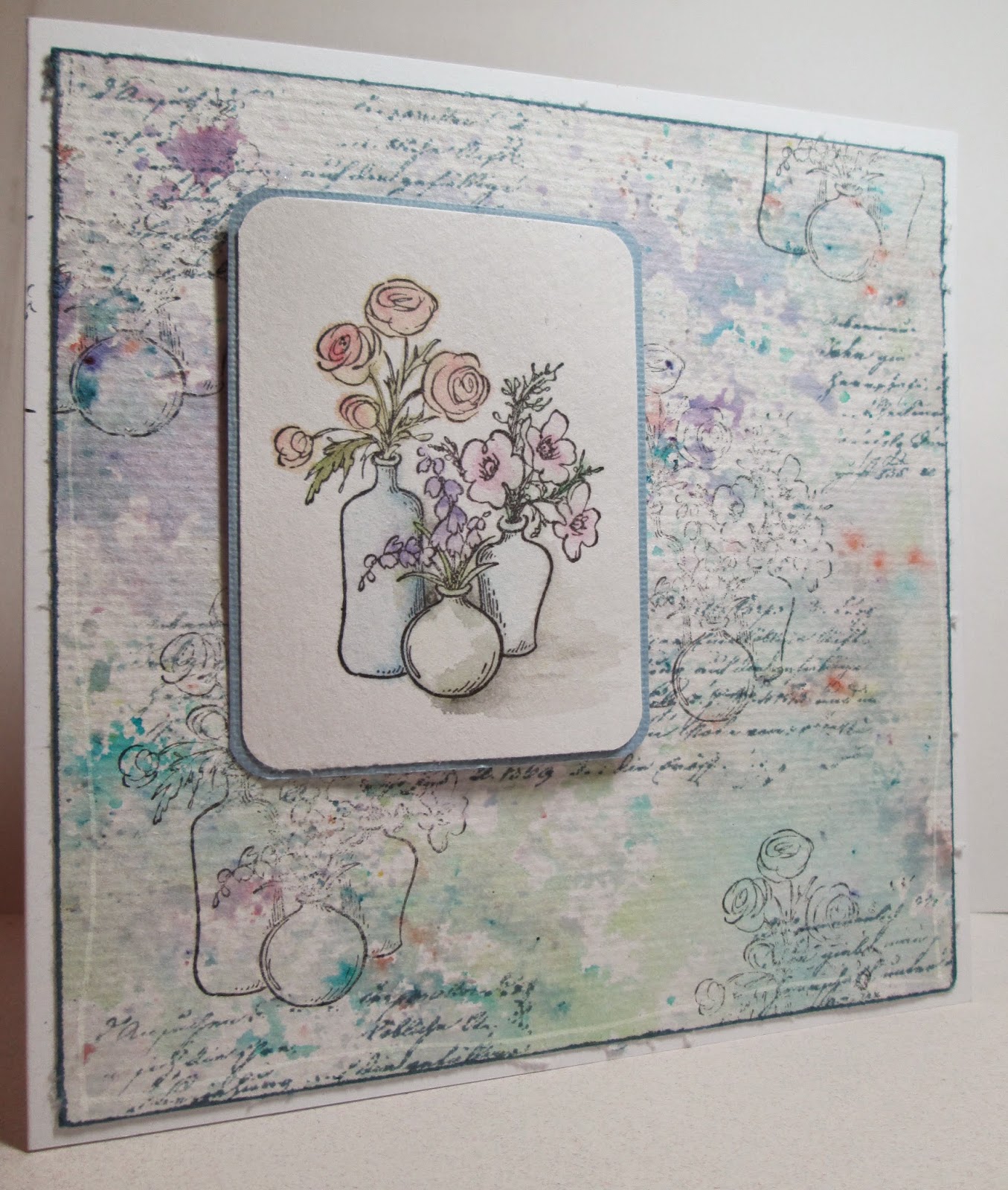 Oh Esther, this is sooo beautiful. I absolutely love the colours and that stamp is gorgeous. I love the water colouring of the vase and flowers, so perfect with the soft background.