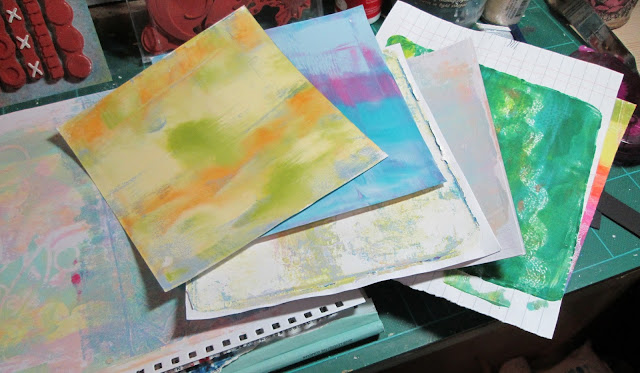 I started with an assortment of discarded gelli prints. I always end up with a selection of prints from gelli plate sessions that I'm not so keen on but I never throw them away.