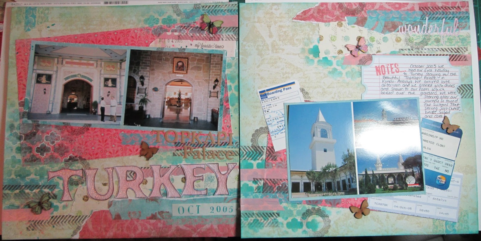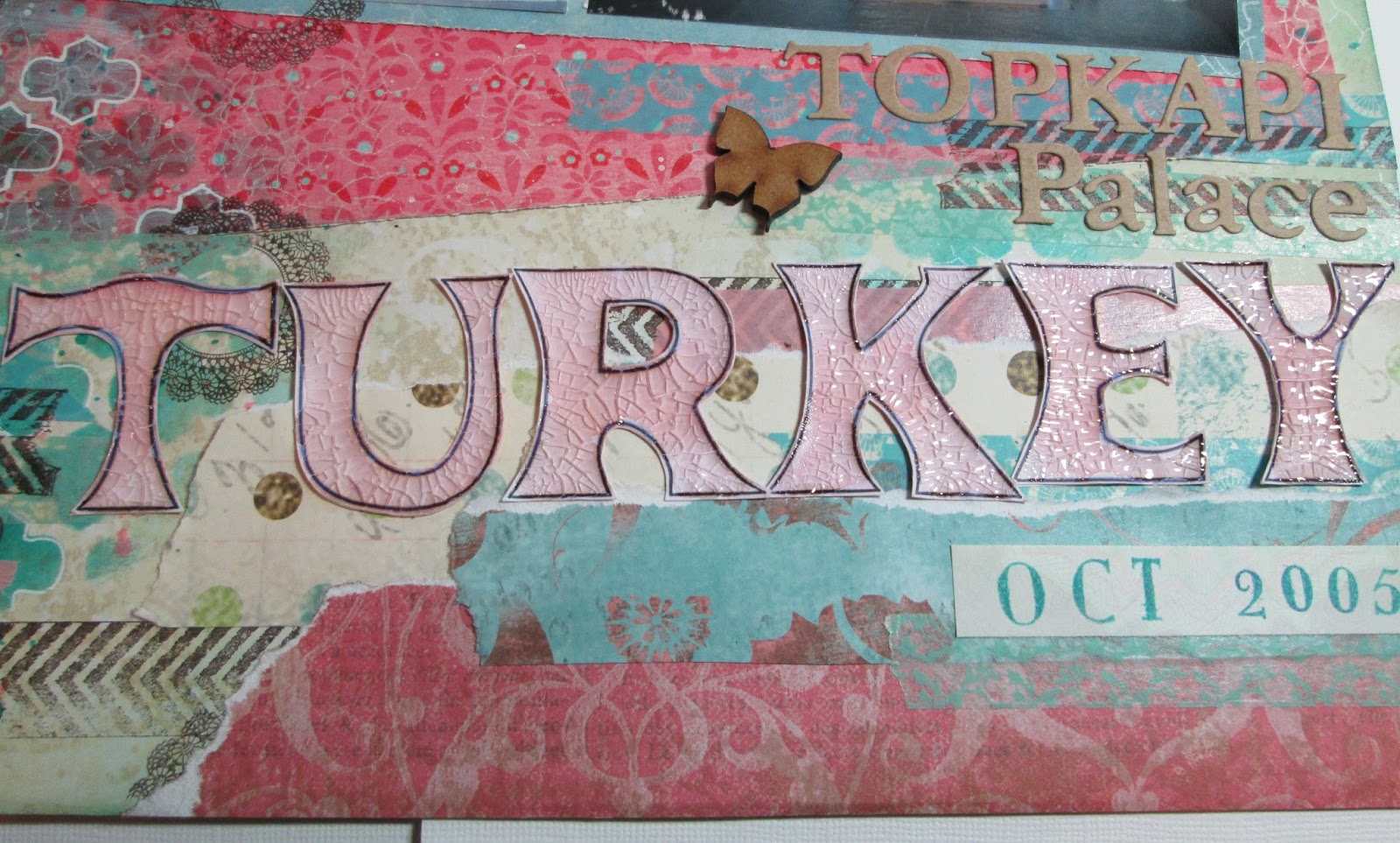 I also added some journalling, a die cut word, wooden butterflies and tickets from the trip itself.