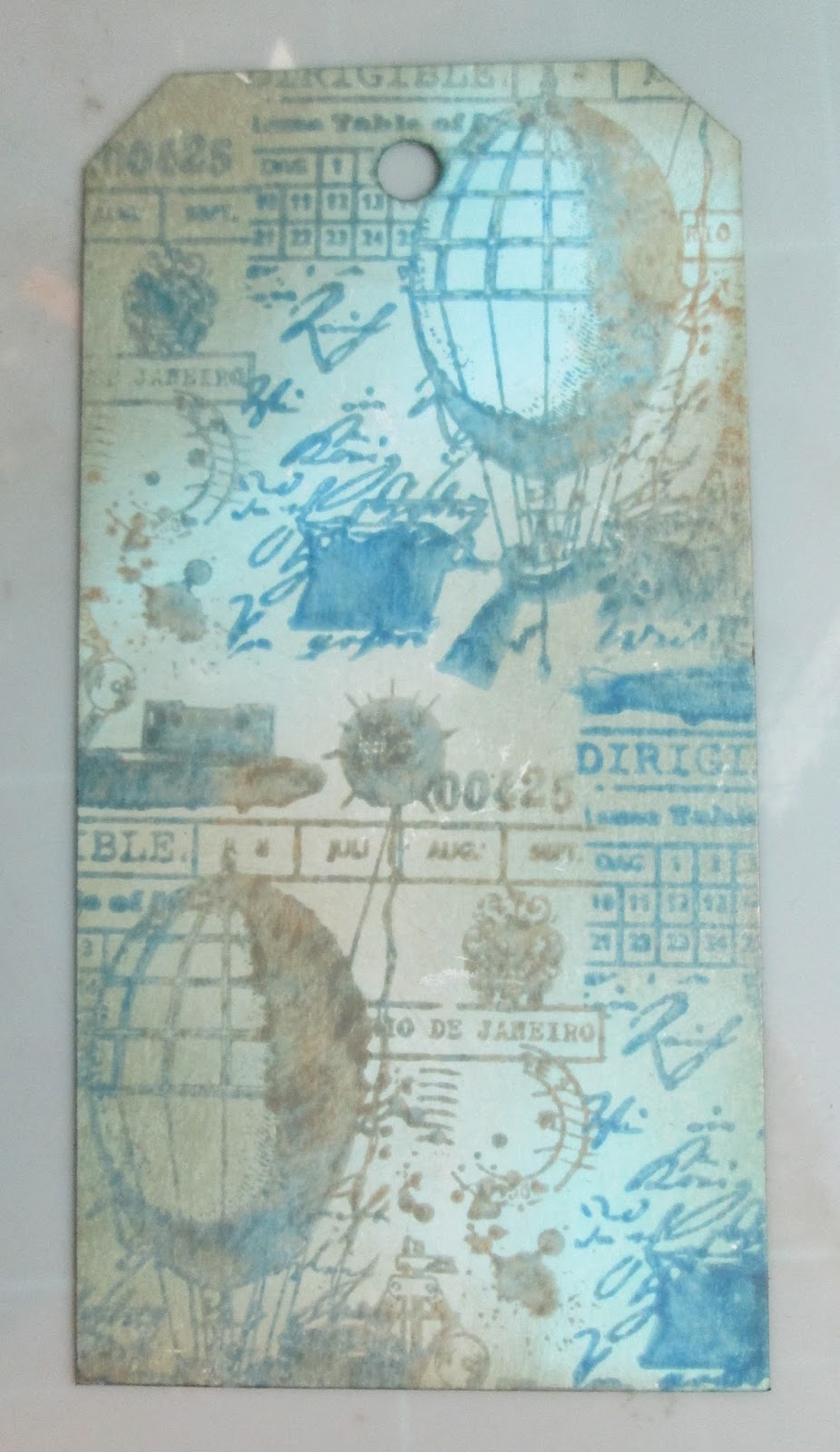 So here's the first layer with basic technique - stamping with archival ink and then adding distress ink over the top. I used Adirondack stonewashed and latte ink with Andy Skinners flight of fancy stamp set, followed by tumbled glass, pumice stone and walnut stain distress ink.