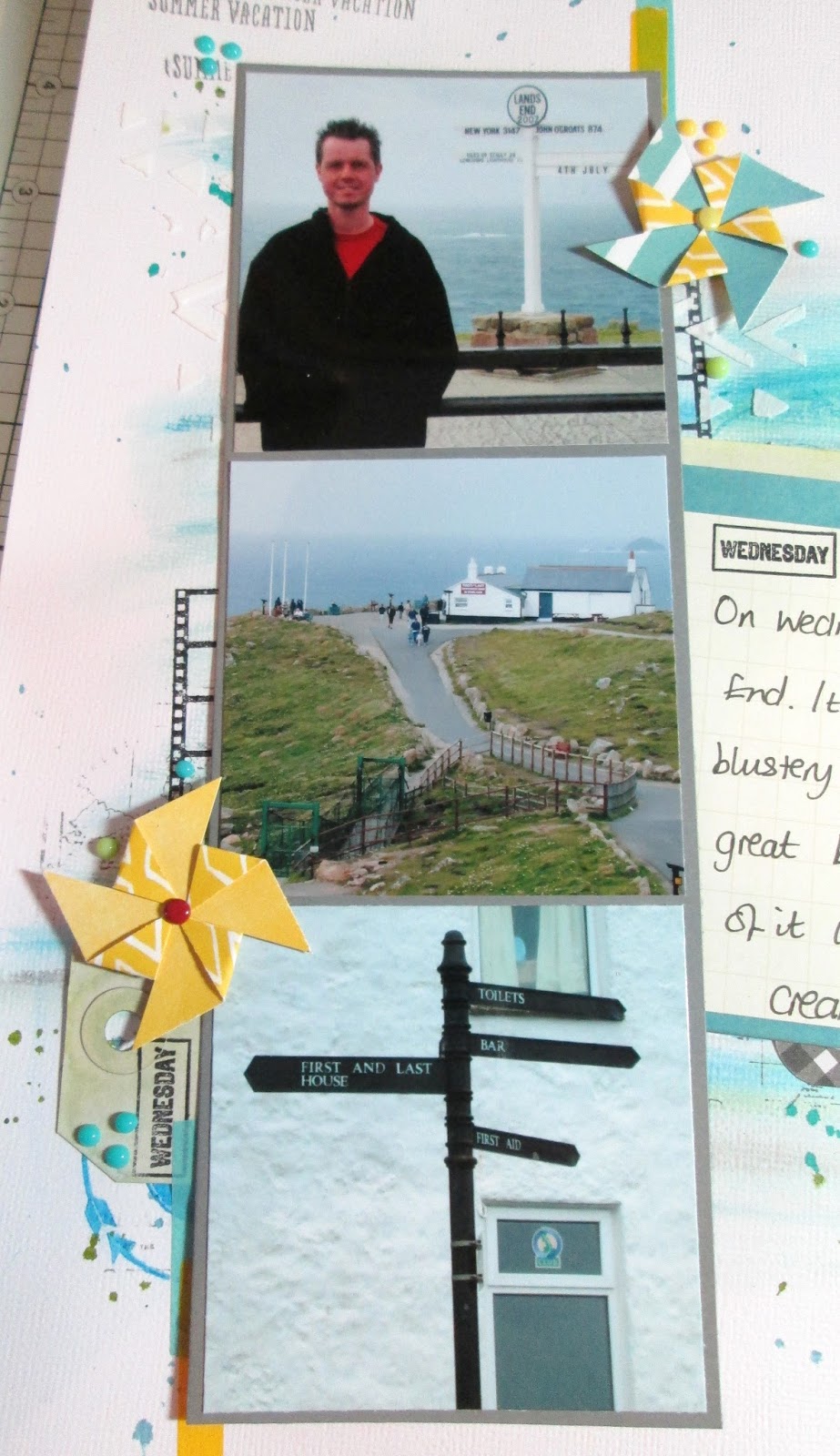 I started to scrap the photos of a holiday to Cornwall we took in 2007 and it reminded me that we have some lovely places to visit in this country, we've had our holidays abroad for the last few years but I do enjoy exploring the UK when we get the chance. I'm not doing the photos in order, these were taken midway through the holiday when we went to Land's End. I chose them because I am using my counterfeit kit (which I shall share further down) and the first challenge is to take inspiration from Beach reading. One of the book covers on the inspiration pic was of a sign post which immediately made me think of these pictures. (sorry these photos are a bit dark - couldn't get the lighting right as it was grey and gloomy by the time I took them)