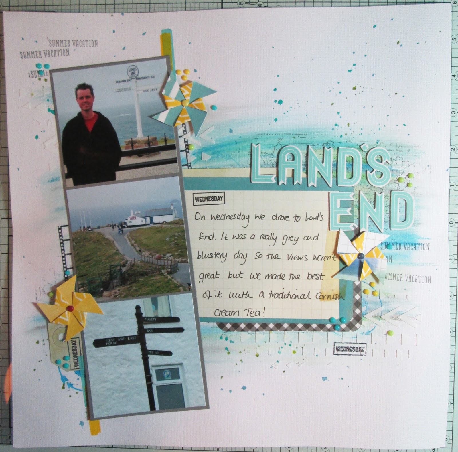 What an awesome layout!! And thanks for reminding me how beautiful Land's End is! I fell in love with Cornwall after reading all the books from Rosamunde Pilcher and was so happy when I finally got to visit it. I love the background of your layout and thanks for showing us how you did that!! Thank you so much for choosing to play with us at Stuck?!Sketches!